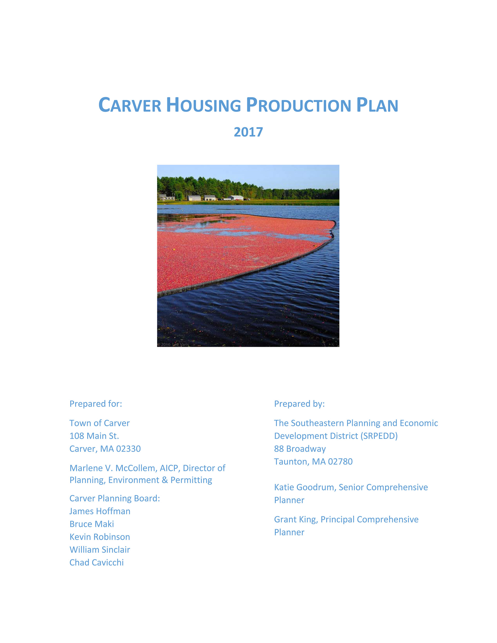 As part of Comprehensive Plan project teams, I have completed existing conditions analyses and facilitated discussions at public and stakeholder meetings for Massachusetts towns. I also wrote Housing Production Plans for three municipalities. They include demographic and housing profiles drawn from Census and assessor's data, information gathered from meetings with local representatives, and tailored goals and strategies for meeting the town's housing needs. The following pages are excerpted from the Carver Housing Production Plan, which I also converted into the Housing element of the town's Comprehensive Plan.
